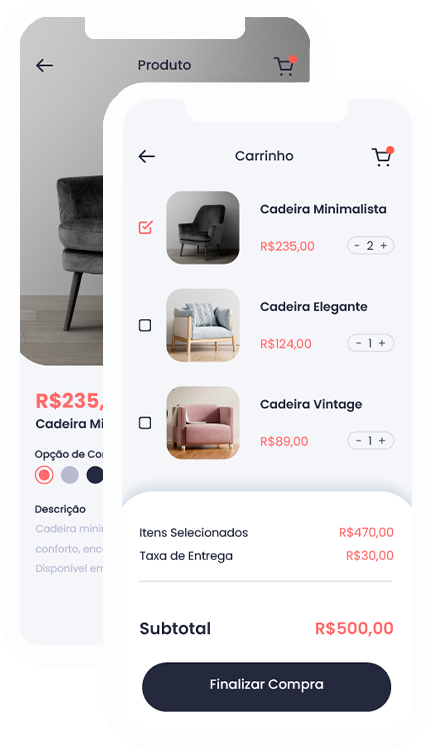 Para garantir que os usuários tenham uma boa experiência durante o uso do app, projetamos cuidadosamente sua interface. Sempre buscando alcançar um design moderno e intuítivo.